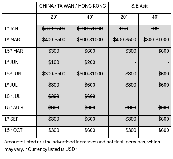 Despite most matrices pointing to weak market conditions, the carriers have commented that forward bookings post the Golden Week holiday period are strong. The blank sailing program is set to continue to balance demand and supply so as a result, carriers are advertising a fresh round of GRI's from North and South East Asia.